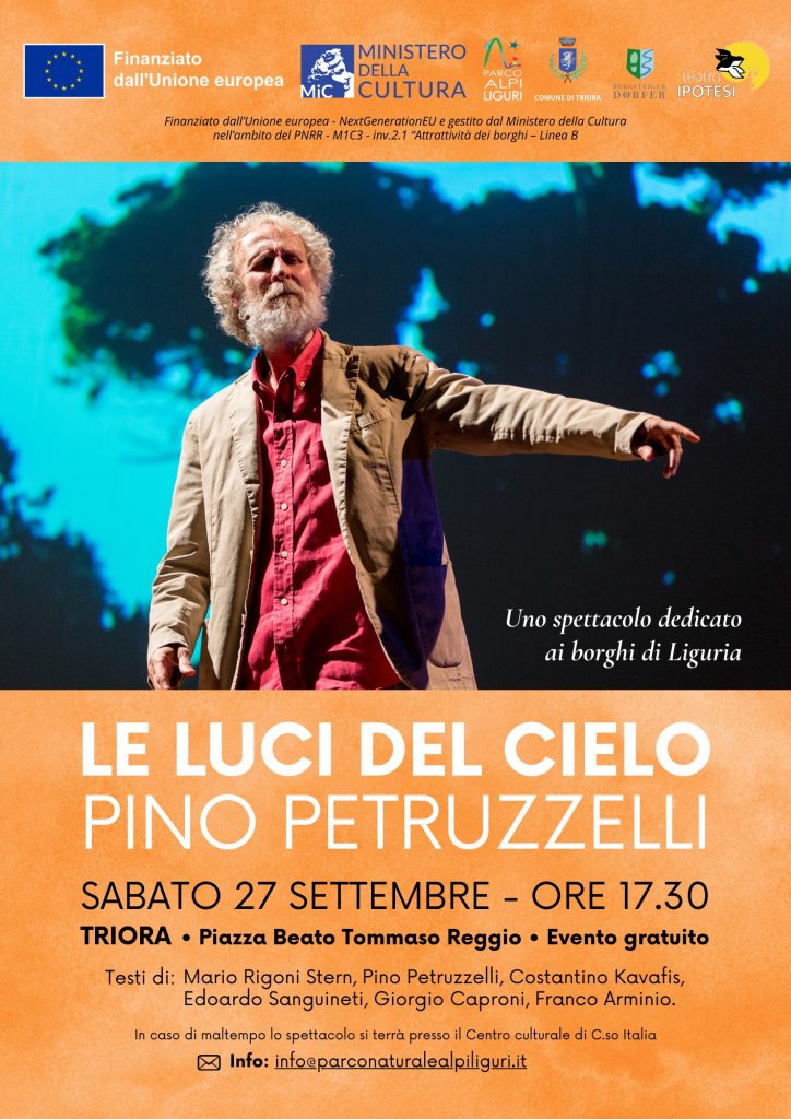 Sabato 27 settembre a Triora uno spettacolo teatrale dedicato ai borghi di Liguria: “Le Luci del Cielo” di Pino Petruzzelli, a cura della compagnia “Teatro Ipotesi”.
